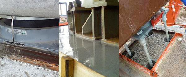 5、采用重力灌浆方式,将拌和后料浆均匀倒于处理好的基面上,灌浆过程应从支座中心部位向四周注浆,自流平即可。也可从一侧灌入,直**另一侧溢出,以利于排出机座与混凝土基础之间的空气使灌浆充实。为使空气顺利排出,不得从四侧同时进行灌注。结构复杂、空间很小且距离较远时,可采用“高位漏斗法”或“压力法”进行灌浆。
